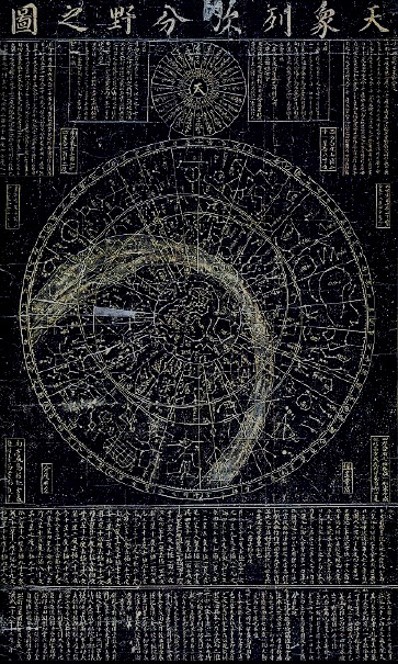 에는 1,467개의 별이 새겨져 있다. 천문도의 별의 위치는 북극성 (北極星)주변에 있는 (적위 50도 이상)별은 14세기. 바깥쪽에 있는 (적위 50도 이하)별들은 1세기 무렵의 별자리임이 밝혀졌다.